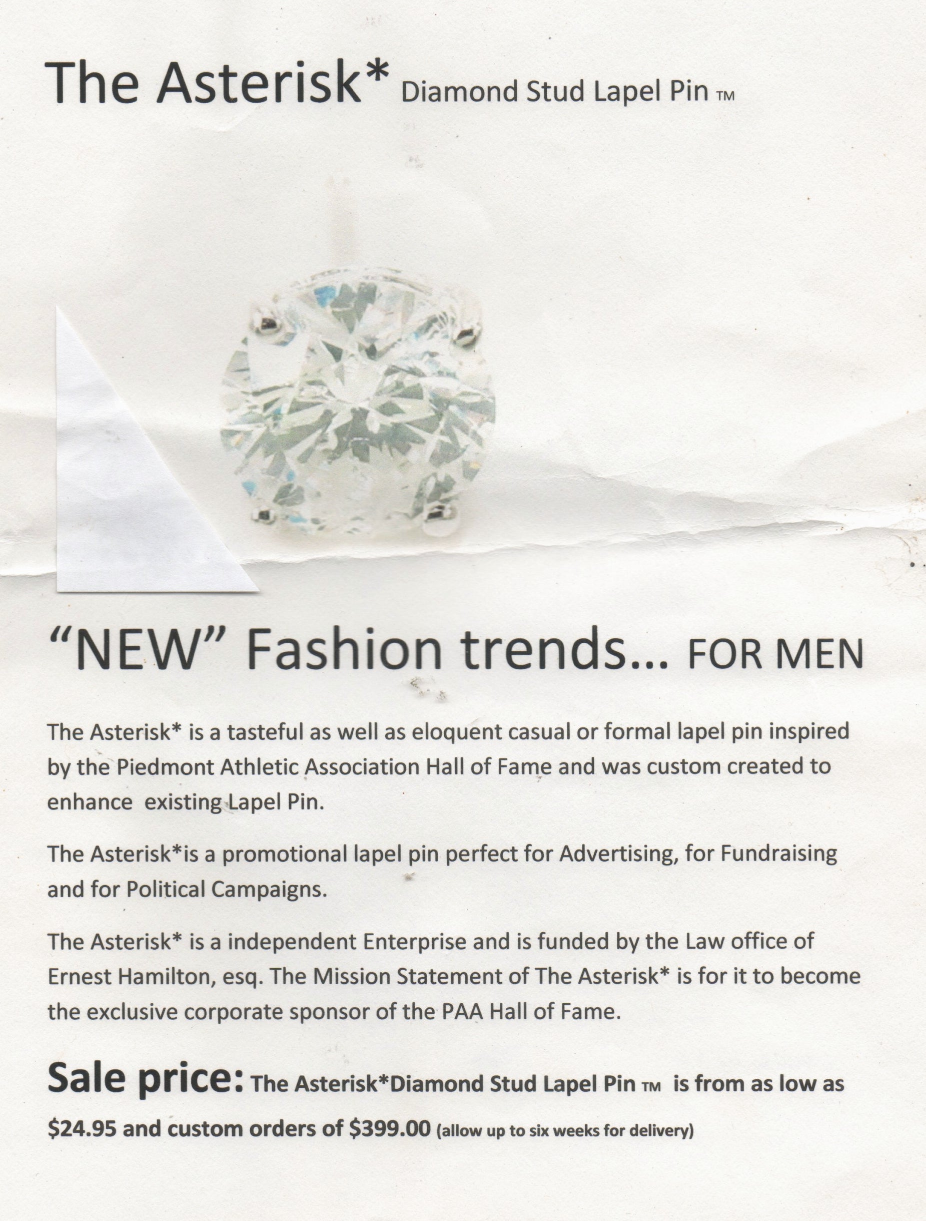 Asterisk * shape lapel pin custom designed for any occasion: company anniversary, personal valentine, highlight someones accomplishment etc. (* the pin is not a real diamond)